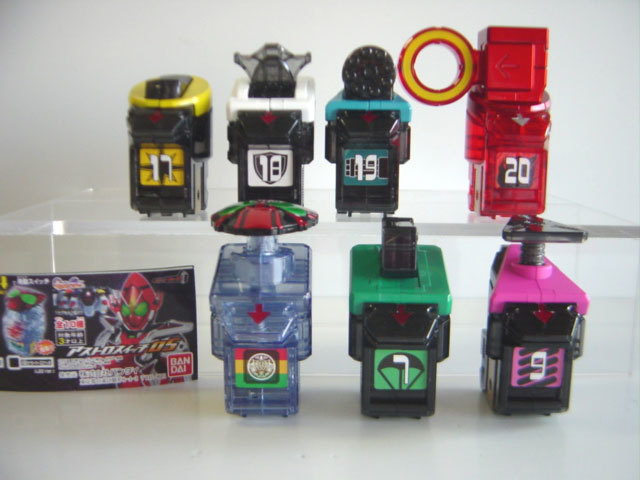 1.20.ファイヤースイッチ 2.19.ガトリングスイッチ 3.18.シールドスイッチ 4.17.フラッシュスイッチ 5.9.ホッピンスイッチ 6.7.パラシュートスイッチ 7.オーズスイッチ ◇新シリーズ第5弾◇ 番組に続々登場する最新スイッチに加え レジェンドライダースイッチが初登場!! ガシャポンオリジナルスイッチも加わり なりきりアイテムとトイベルトが連動! データカードダスガンバライドと完全連動! ガシャポン仮面ライダー商品シリーズと連動! |