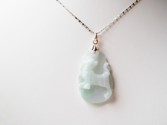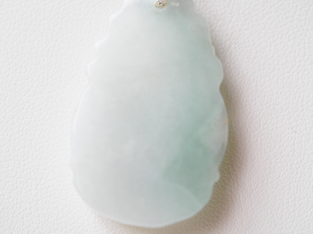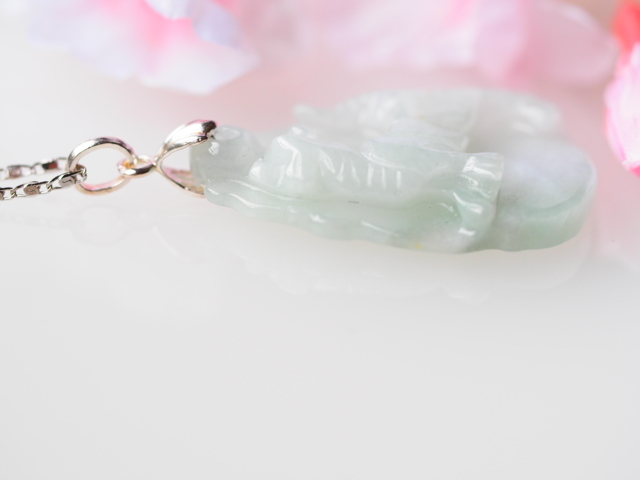 こちらはミャンマーパカン鉱山産出の、白翡翠(自然色)の彫刻ペンダントネックレスです。
