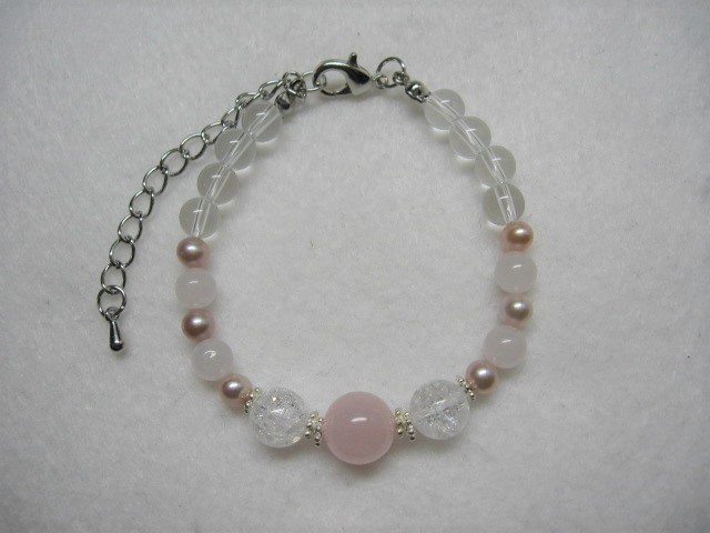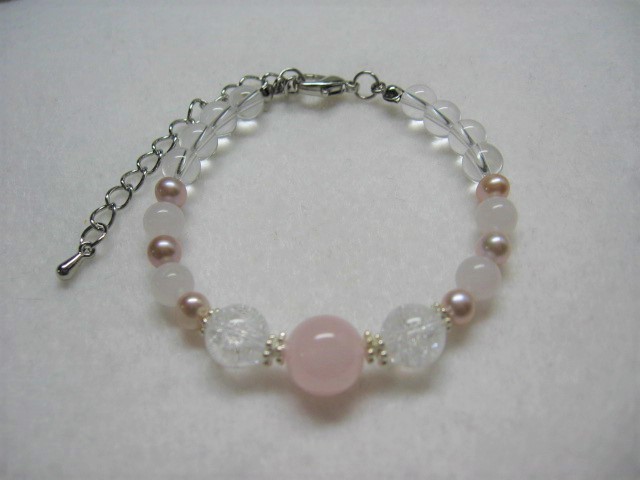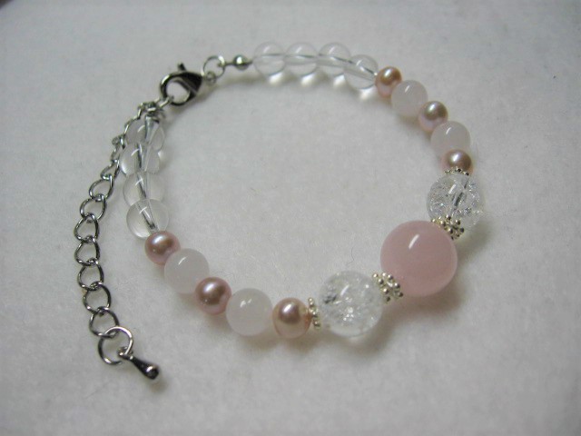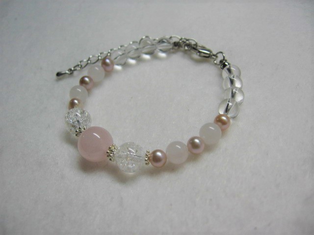 ローズクォーツ&淡水パールブレスレット☆天然ローズクォーツ&淡水パール&ブラジル産天然水晶☆デザインブレスレット☆10㎜☆8㎜☆6㎜☆