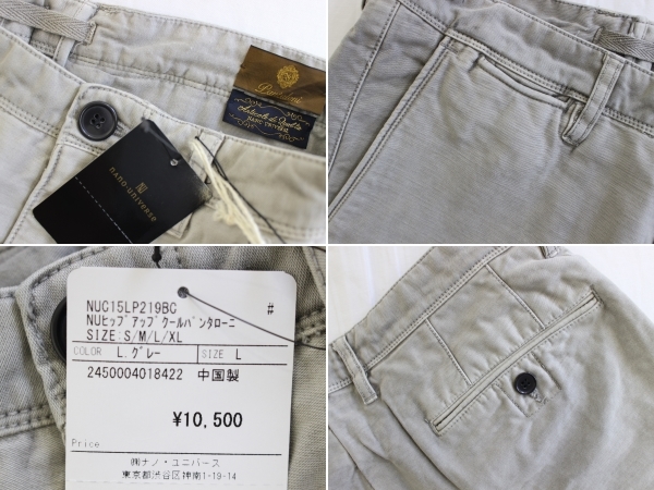 新品■nano universe ナノユニバース■ヒップアップクールパンタローニパンツ L ライトグレー【517-6383】