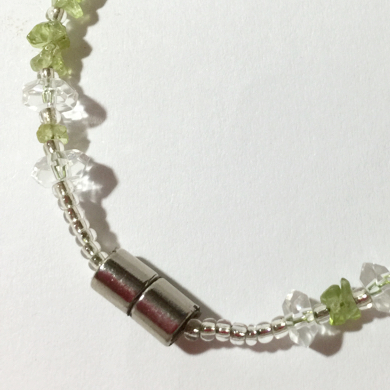 使用されてい金具は、最高質で最強磁気の磁性アクセサリー金具です。使用の糸は、保護膜があるイタリア製のアクセサリー用の高級ワイヤーです。