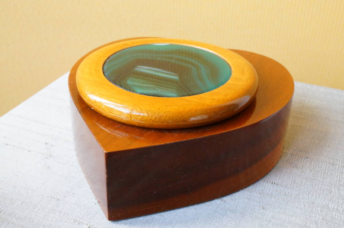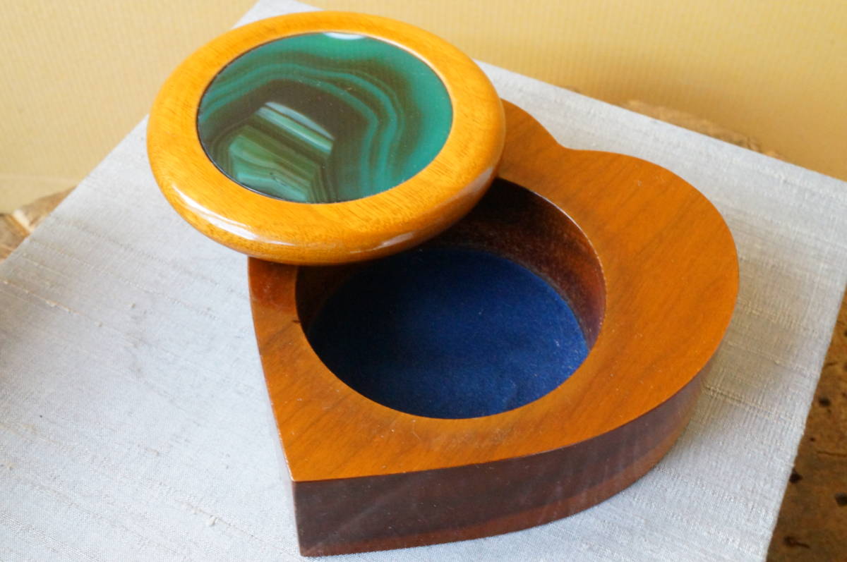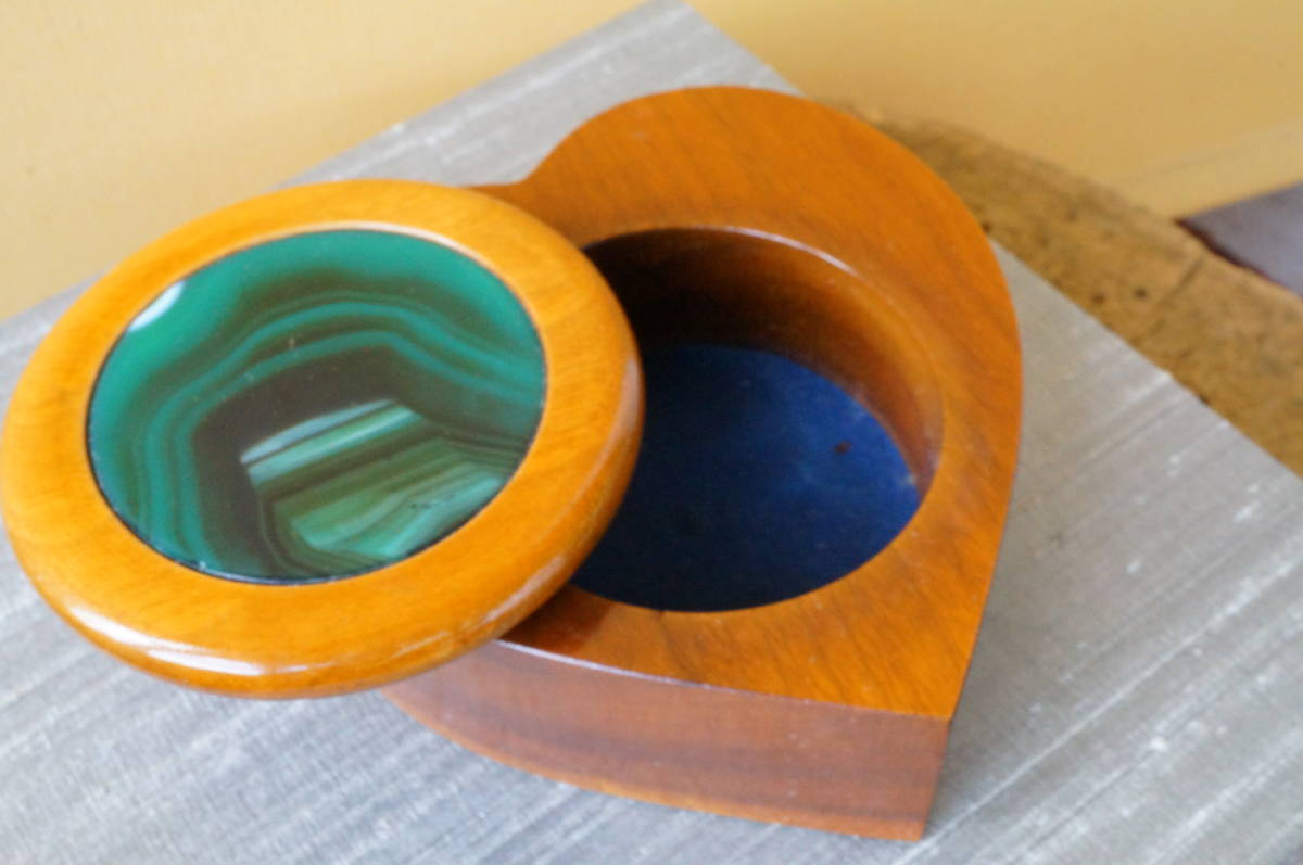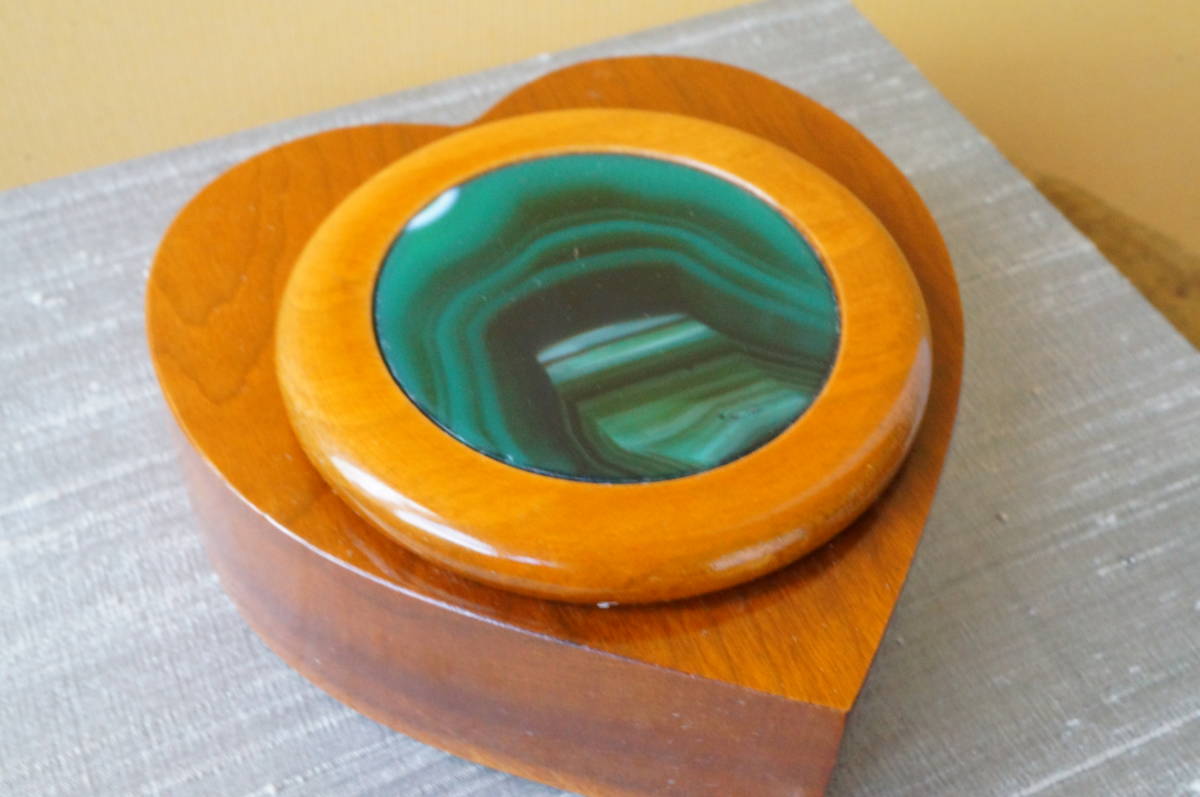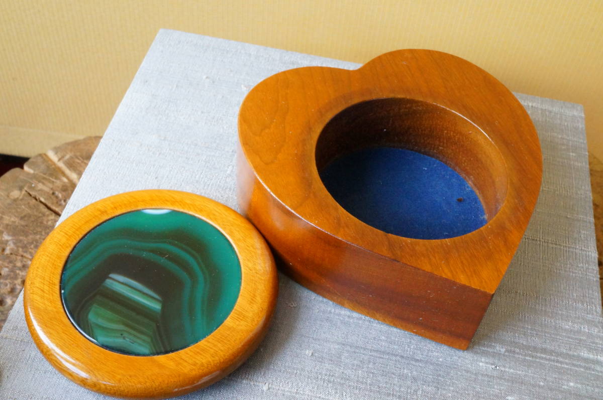 | 30年前のの希少在庫!上質ブラジル産瑪瑙・クリソメノウ・めのう・メノー原石板付木製ハート型小物入れ、宝石箱① | |||||||||||