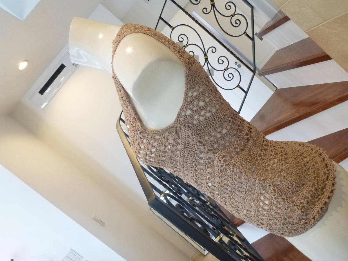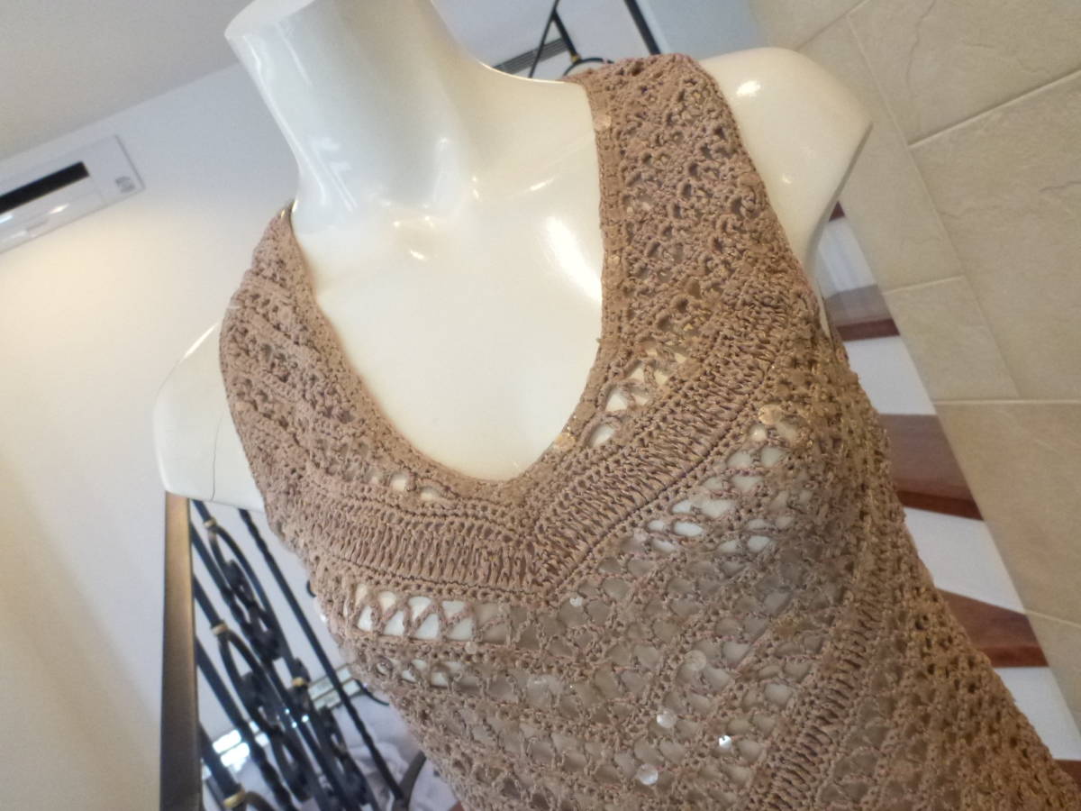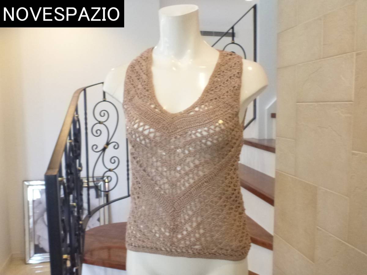 2.5万 NOVESPAZIO ノーベスパジオ★ ベージュ 透かし編み カギ編みニット ノースリーブニット 38 M相当