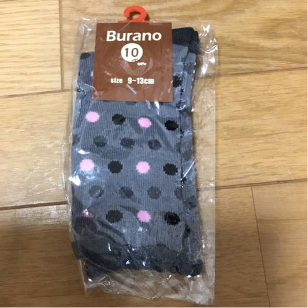 新品未使用 Burano 水玉柄靴下 9~13cm グレー