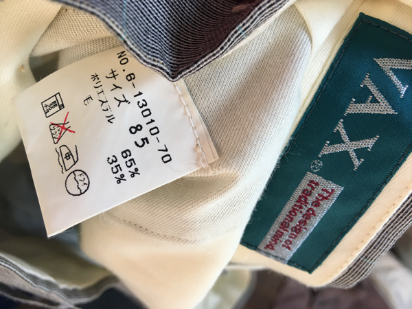 VAXの春物パンツです。サイズはウエスト85股下73裾幅23.5センチ位です。カラーはグレー系です。