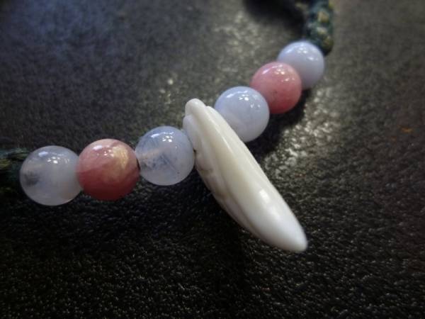 ホワイトシェル ホワイトジェード インカローズ ブルーレースアゲード マクラメブレスレット