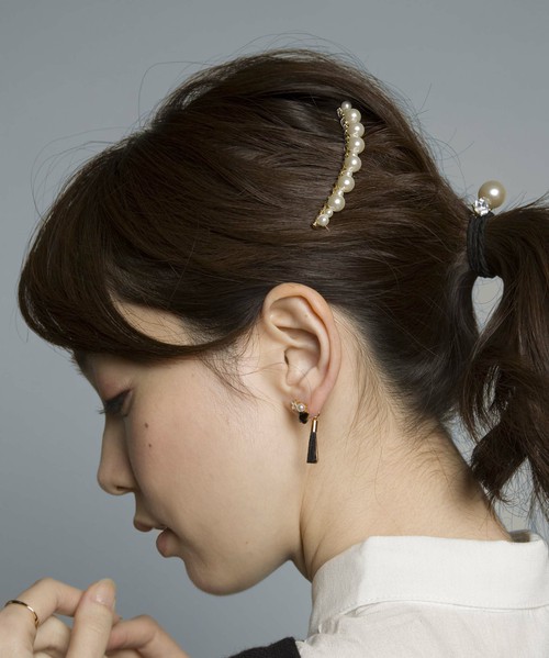 パールコーム ゴールド パーティ 結婚式 デート まとめ髪 ヘアアレンジ ハーフアップ
