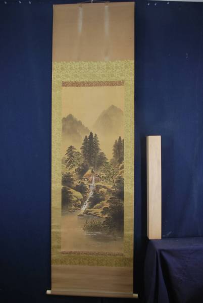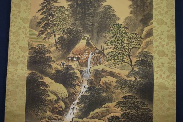 真作/青虹 山水水車之図 /掛軸☆宝船☆L-777