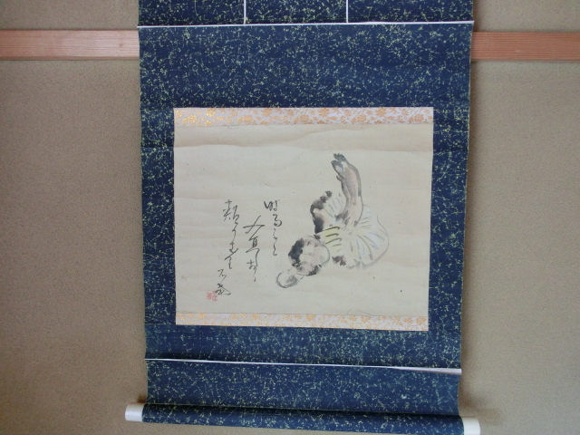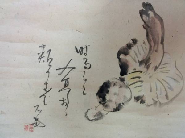 掛軸■松茸 きのこ 石式 紙本 茶掛け 秋 掛け軸 肉筆 古美術 骨董品■(26)