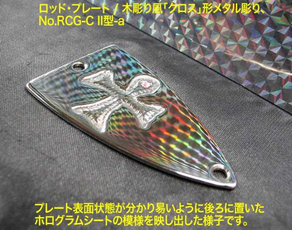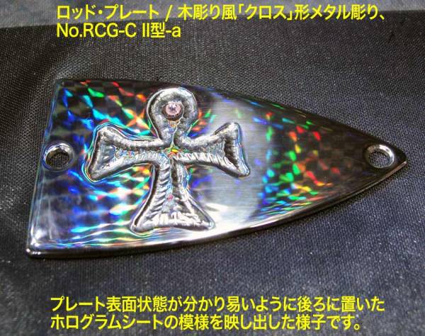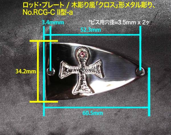 *手り作品 ギブソン・タイプ向け 特製 メタル・ロッドプレート/木彫り風 彫金 クロス形 メタル彫り ステンレス製 を1枚出品/RCG-C II 型-a