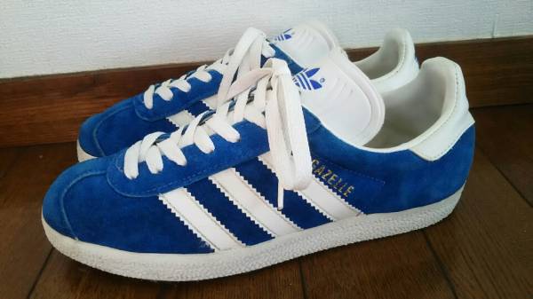 カラーは青スエード×白で、サイズはUS7(25cm)です。
