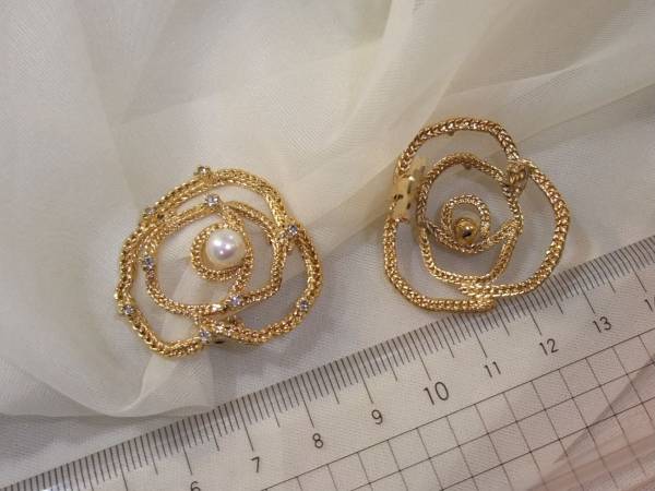 古いフェイクパールのコスチュームジュエリーイヤリング♪ビンテージフェイクパール使用☆ビンテージアンティークデザイン系☆デザインがレトロでゴージャスでレア♪新古品☆古い在庫コレクション☆