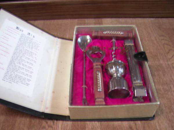 新品、保管品、アンティーク品の為保管時にできたと思われる多少の痛みなどはご理解の上ご入札おねがいします、中にすこし置きじみ、裏側にはがれなどあります、ブッグ型ケースは素材紙製?、栓抜きなど中身は綺麗だと思います、ケースのSize15.8x22.5、厚み5cmほどです、このまま飾っても素敵です、定形外で発送できます、ほかにも色々出品していますのでみてください。