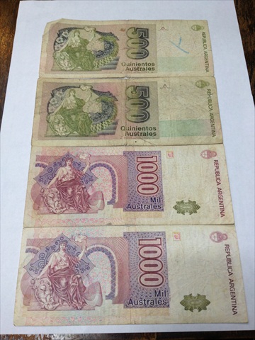 送料無料 即決 アウストラル時代 アルゼンチン紙幣 4枚セット