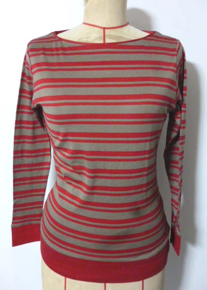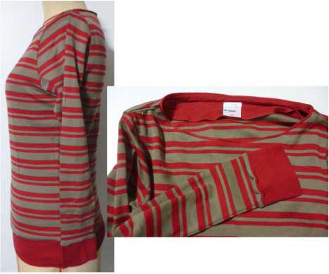 ボーダー カットソー 赤×茶系 日本製 ロンT