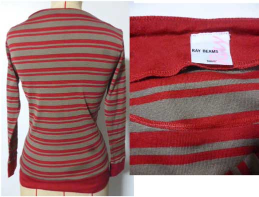 RAY BEAMS ビームス ボーダー カットソー 赤×茶系 日本製 ロンT