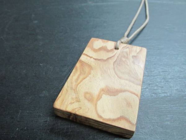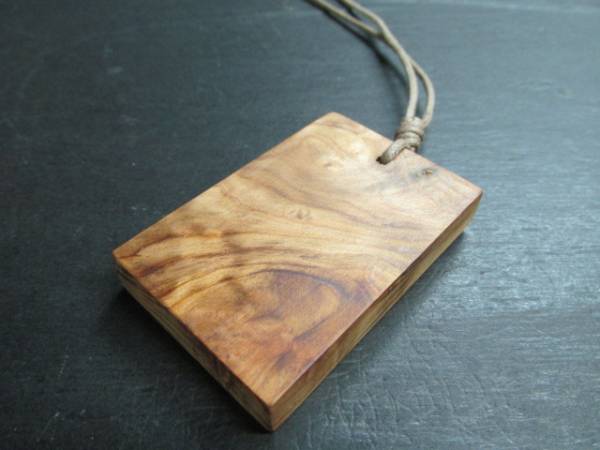 屋久杉は屋久島独特の気候と地形、地質(花崗岩質)のため成長が遅く目が詰まって樹脂成分が多く腐りにくい特徴を持っています。銘木としての屋久杉は千年以上の屋久杉を言い、二千年以上の屋久杉には神が宿っていると言われています。屋久杉の伐採は複雑な形状の根元の部分を避けて地面から2mぐらいのところから伐採され、この残された切り株の部分を土埋木といいます。屋久杉の伐採が禁止されている現在、屋久杉の土埋木はほとんど取りつくされとても希少性の高い銘木になっています。その屋久杉土埋木を使ってペンダントを作ってみました。