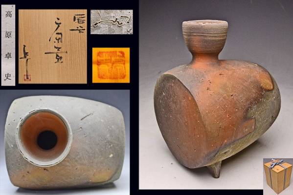 サイズは 130mmx111mmx高さ168mm です。 名工 高原卓史 氏の 作品です。 新羅 や 高麗 を 思わせる 動きのある 造形に 窯変による 緋色 景色が 抜群の 逸品です。 口にホツがあります。 写真を参考の上 入札下さい。 宅配便80サイズにて 発送します。他にも多数出品してます。同梱対応いたします。 タイトルにある『検』とは 検索キーワードの 略称です。