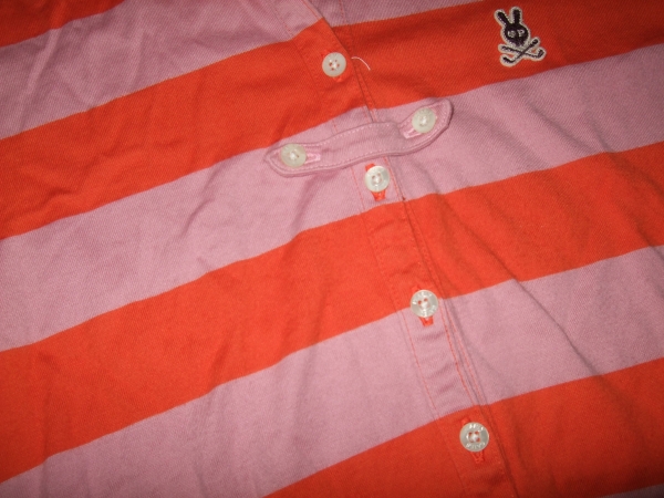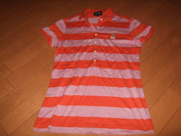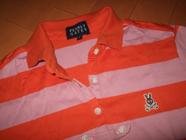 | 良品、即決です。PEARLYGATESのポロシャツ、サイズ1です。素材はコットン100、ピンク×オレンジで、とっても明るい可愛いボーダーです。多少うっすらとした毛羽立ち、ユーズド感は全体的にはあるものの、着用は普通にしていただけるユーズド品です。身幅約42、丈約61、即決です。是非ご検討ください。 | |||