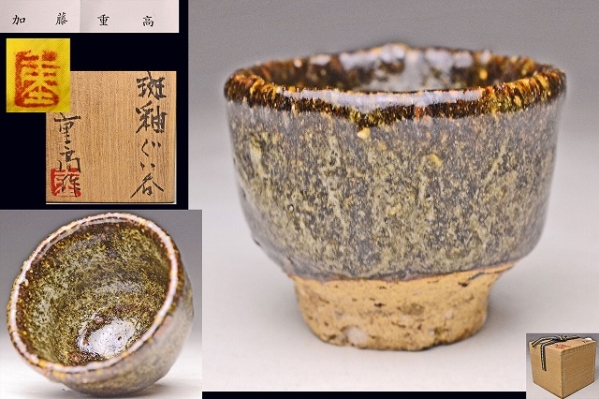 サイズは 60mmx高さ46mm です。 巨匠 加藤重高 氏の 作品です。 独特の 力強い 高台 に 釉景 が 素晴らしい 逸品です。 写真を参考の上 入札下さい。 宅配便60サイズにて 発送します。他にも多数出品してます。同梱対応いたします。 タイトルにある『検』とは 検索キーワードの 略称です。