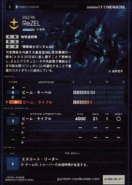 機動戦士ガンダムU.C.カードビルダーロケテスト ロケテ リゼル
