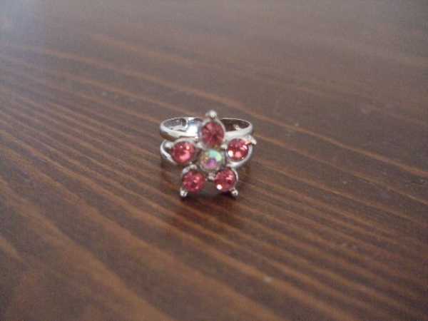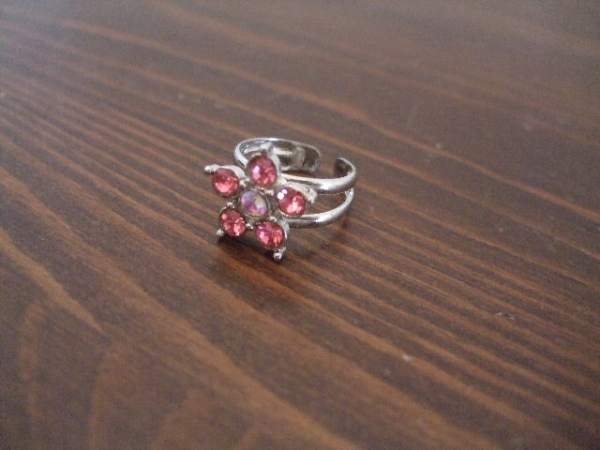 商品名 | ピンクラインストーン花モチーフピンキーリング(USED)73115 |