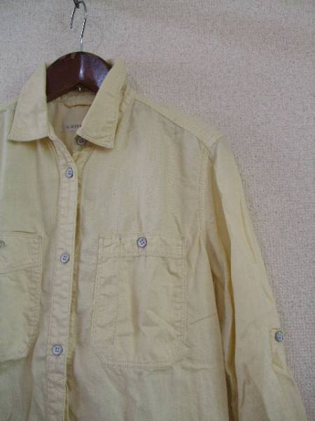 商品紹介 | 薄い色合いの黄色が爽やかな7分袖シャツです。 白いペンキを塗ったようなボタンがポイントになっていて、 下半分は隠しボタンになっています。 袖は折り返してボタンで留めることもできます。 《素材》 綿100% |