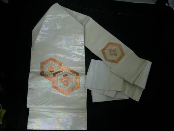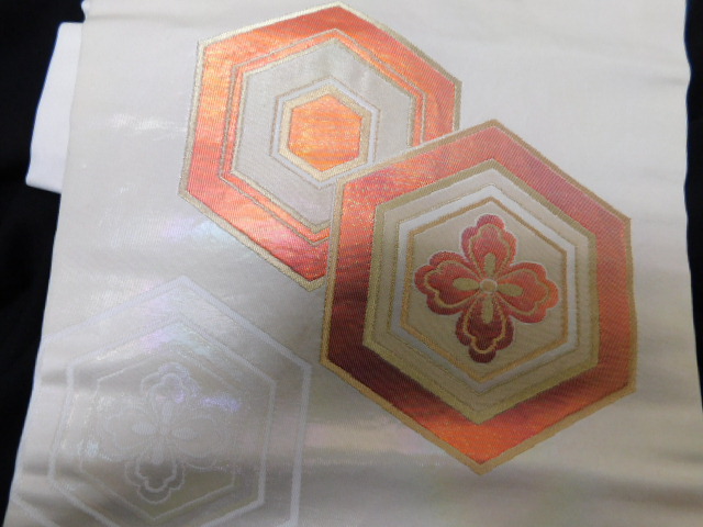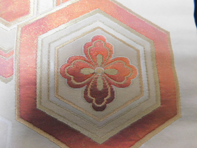 | Y82 正絹 美品素敵な亀甲花紋織りなごや帯 | |