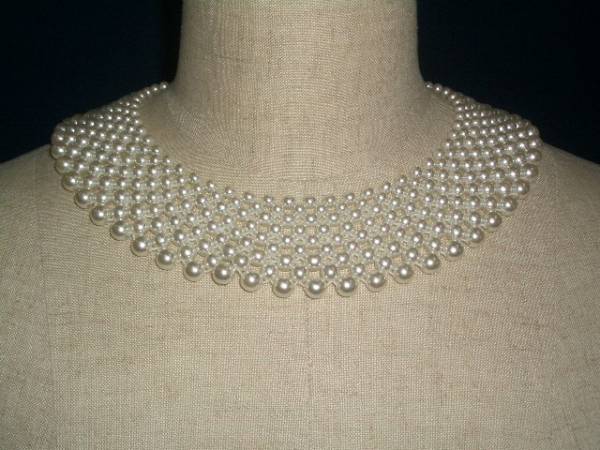 白いパール(イミテーション)を綺麗に編み込んで仕上げた綺麗なネックレスです。