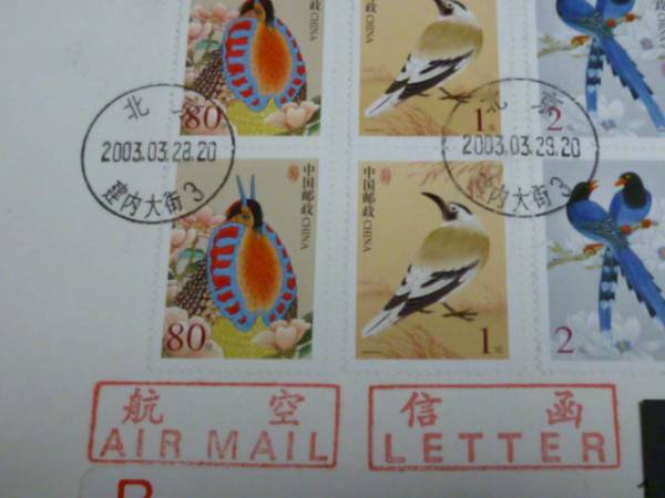 16 新中国切手カバー 2003年 普31 中国の鳥 5種完 ペア貼