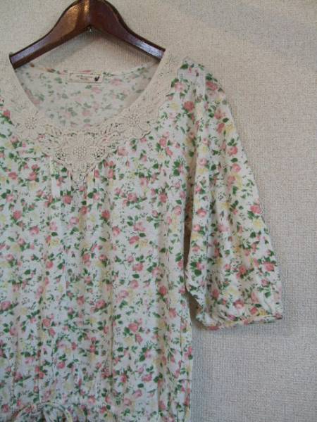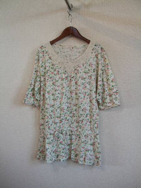 商品名 | earthmusic&ecology白地バラ柄7分袖カットソー(USED)42515② |
