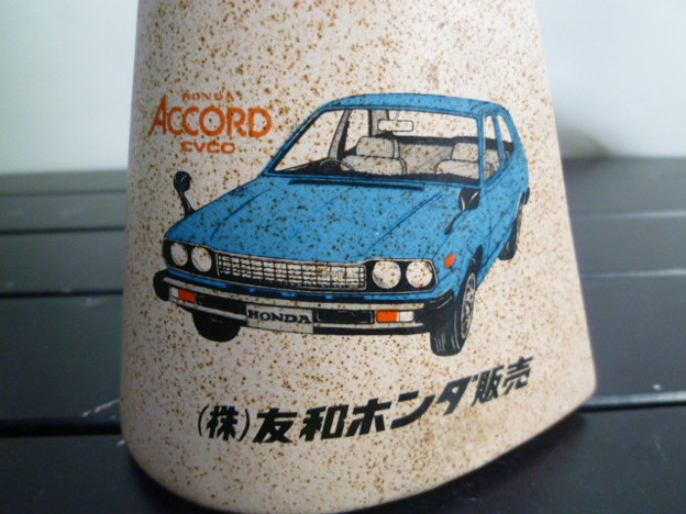商品は「 ◇ホンダ アコード 非売品 一輪挿し 花瓶◇HONDA ACCORD CVCC 」となります。 当時物 昭和レトロな一輪挿しです。 一輪挿し自体に価値は無い物と思われますが、当時のアコードがプリントされております。 飾っていただけなので使用はしておりませんし、割れ欠けもありません。 底面には汚れがあります。 地元の車屋の名前が入っていますが、これはこれで良い味だと思います。 高さはおおよそ25cmとなります。 世田谷ベース的なインテリアやガレージにいかがでしょうか? |