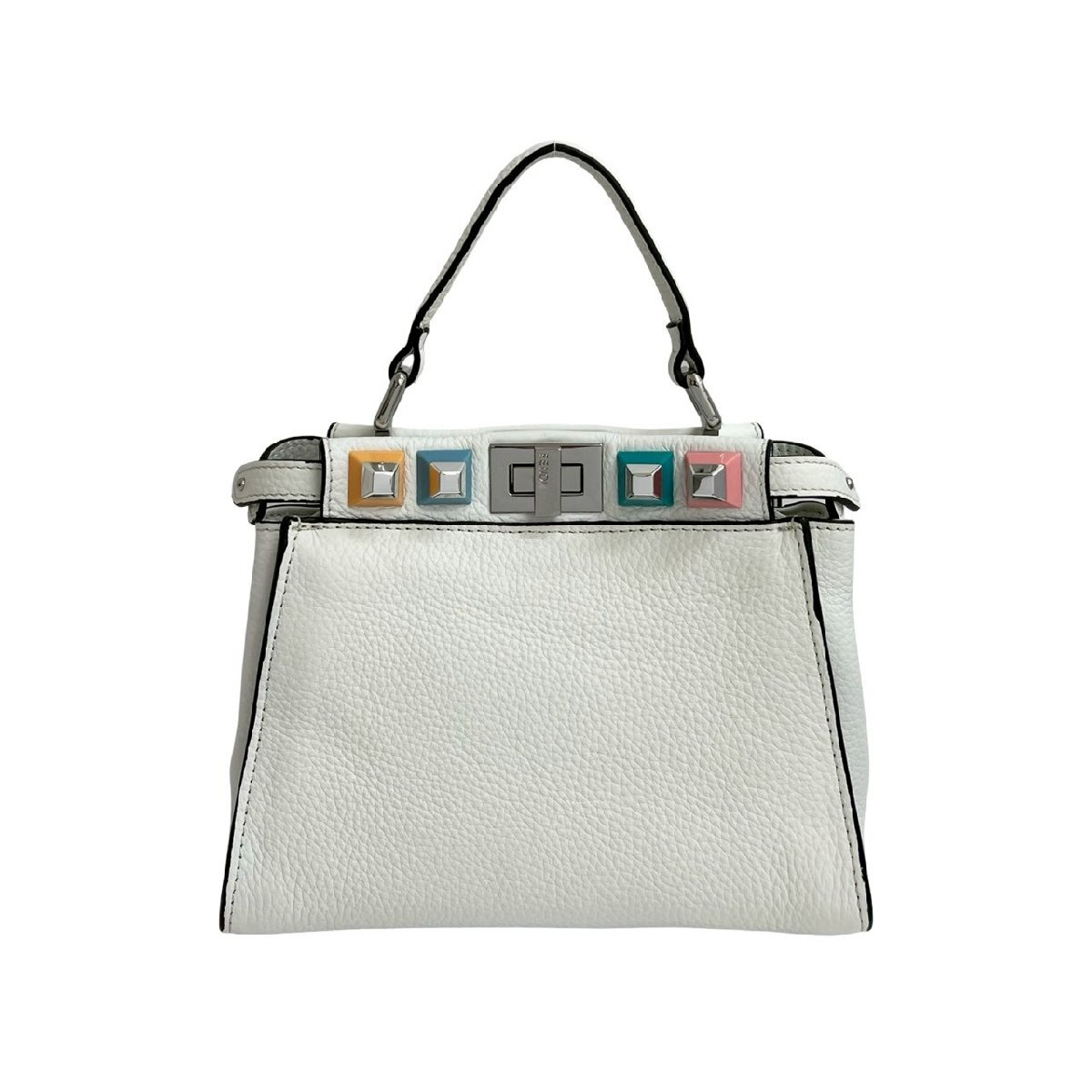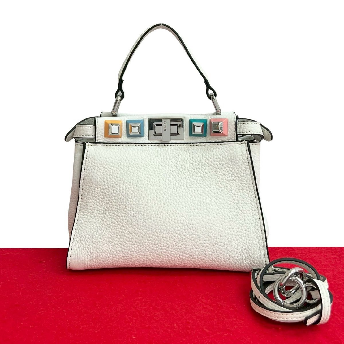 極 美品 希少品 FENDI フェンディ ピーカブー ミニ レザー 本革 2way ハンドバッグ ショルダーバッグ ホワイト マルチカラー 2145b