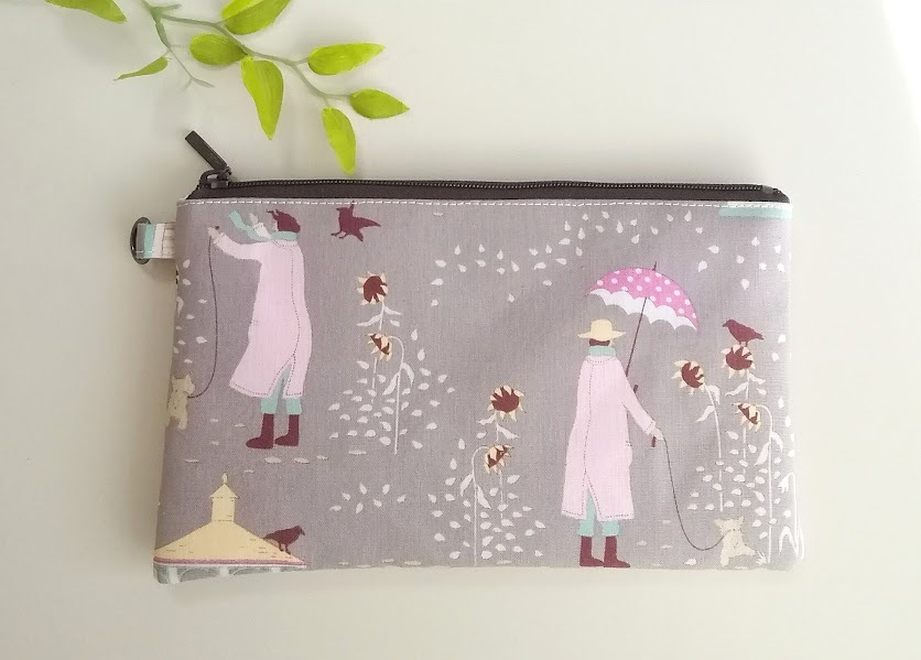 ハンドメイド〈通帳収納OK〉シンプルポーチ Windy Walk*ワンちゃんとお散歩/Tildaの生地を使用〈19×11〉※内ポケット1コ