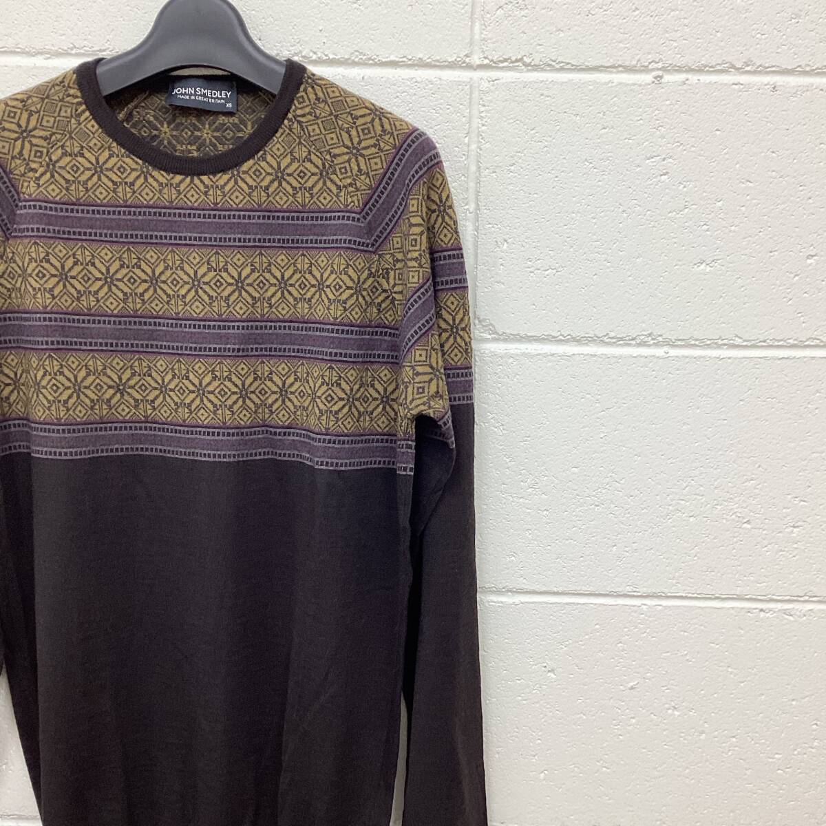 ◇JOHN SMEDLEY(ジョン スメドレー) クルーネックニット XS essery エセリー ハイゲージニット ダークブラウン 茶色 管227