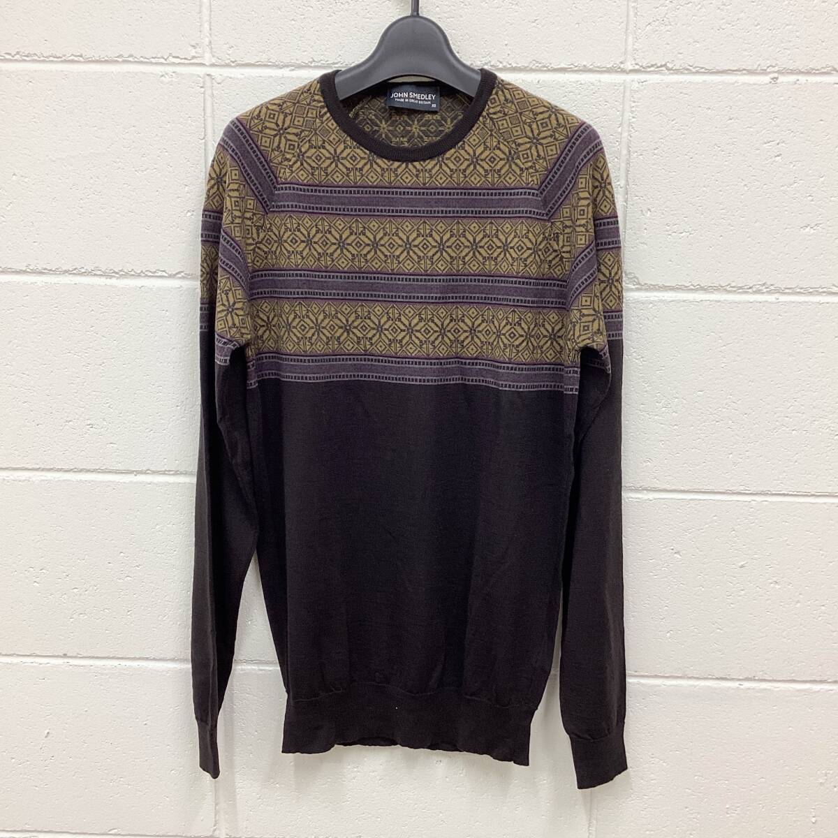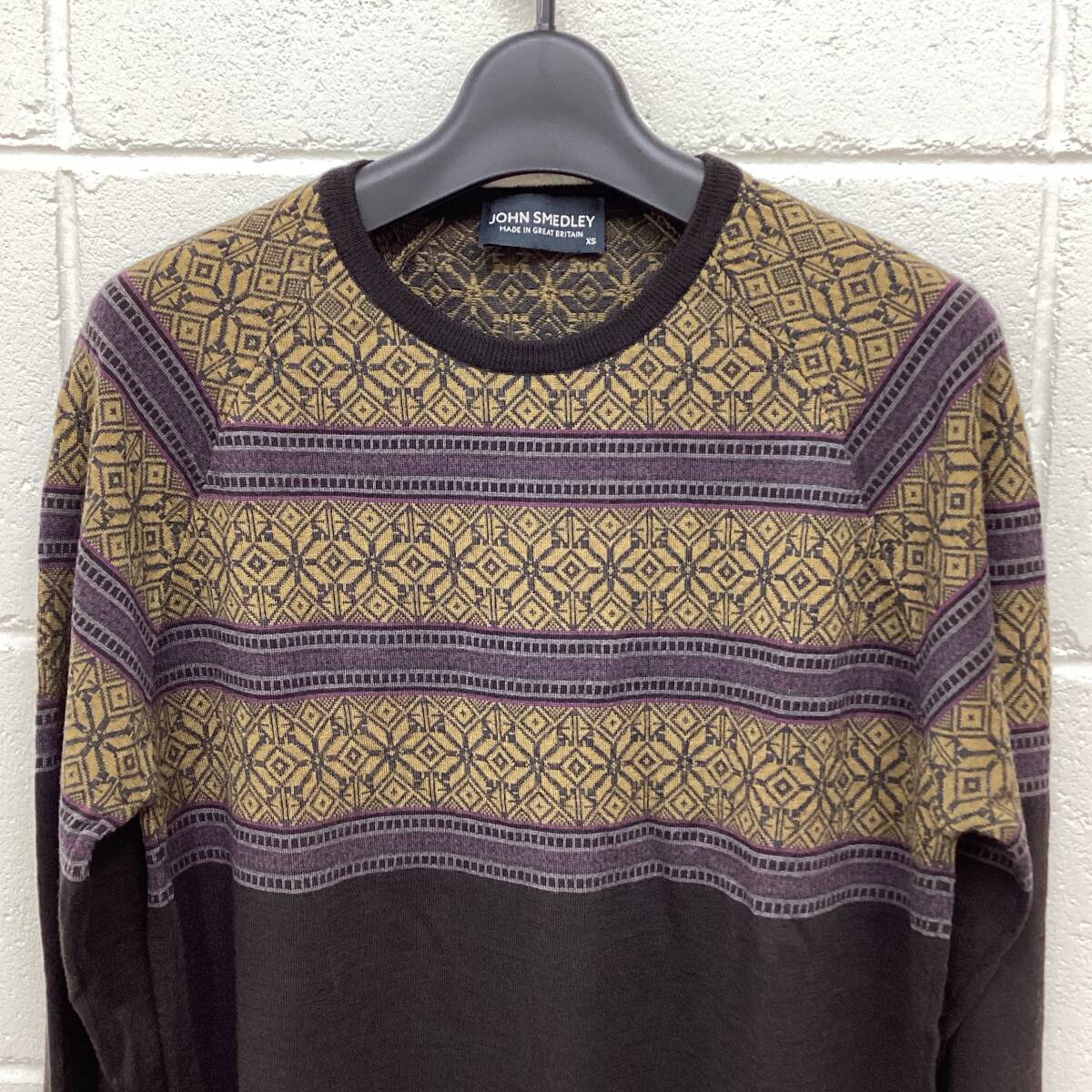 ◇JOHN SMEDLEY(ジョン スメドレー) クルーネックニット XS essery エセリー ハイゲージニット ダークブラウン 茶色 管227