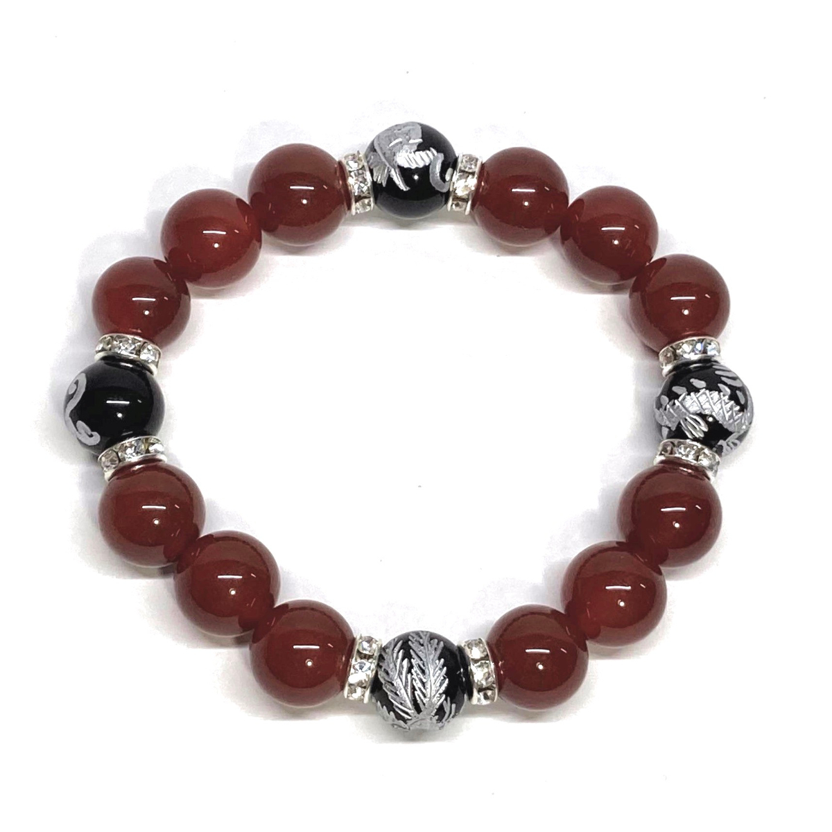 四神獣銀彫オニキス×赤瑪瑙 12mm パワーストーン ブレスレット天然石 青龍 白虎 玄武 朱雀 運気上昇 開運 金運 お守り 四神獸 四神相応 S