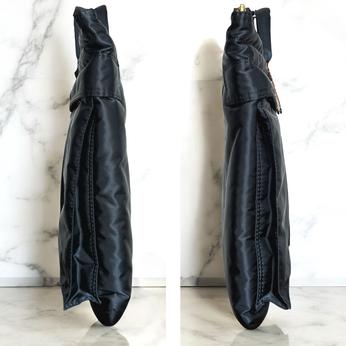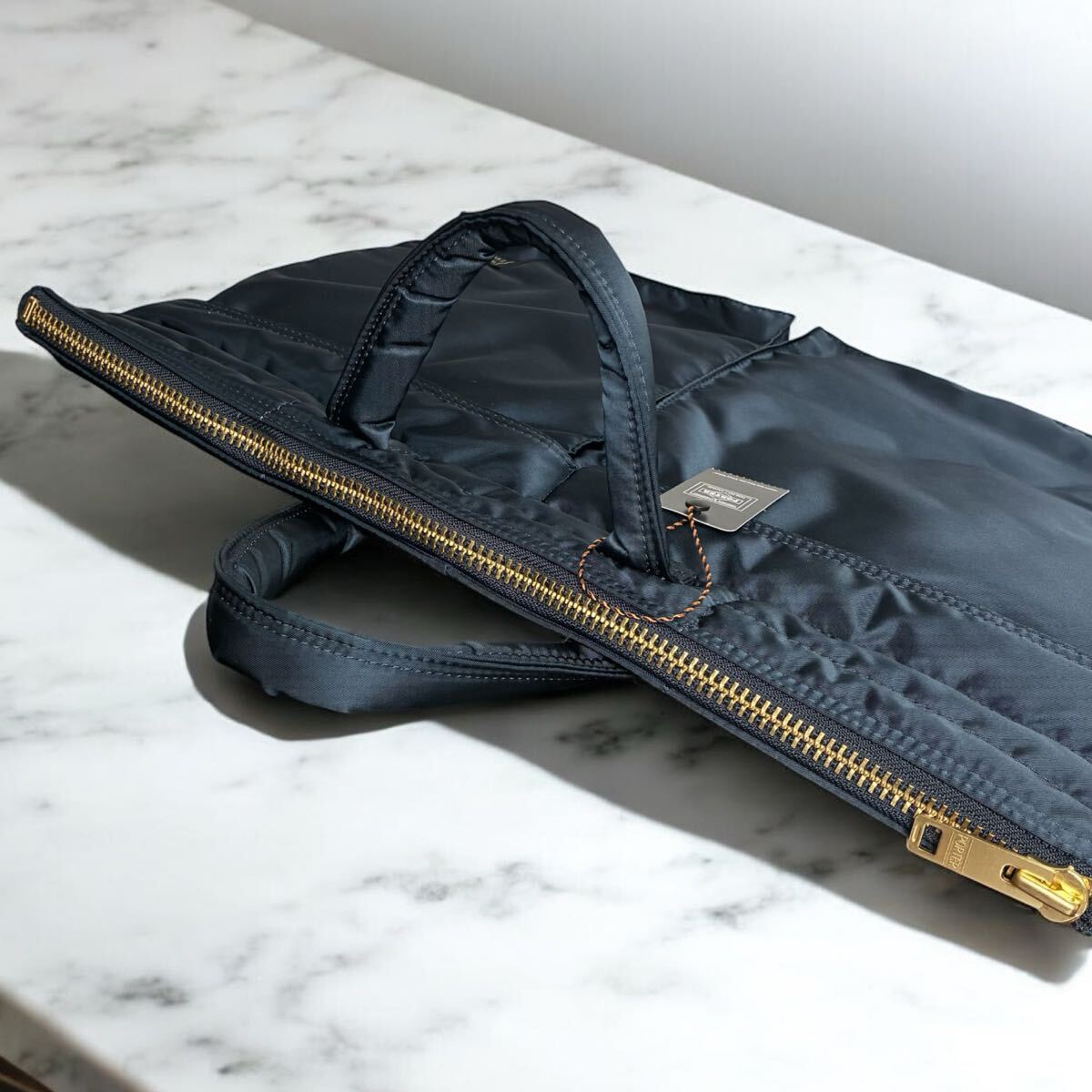 物を何も入れないときは薄マチですが、物を入れると底マチが広がる仕様で見た目以上の収納力があります。