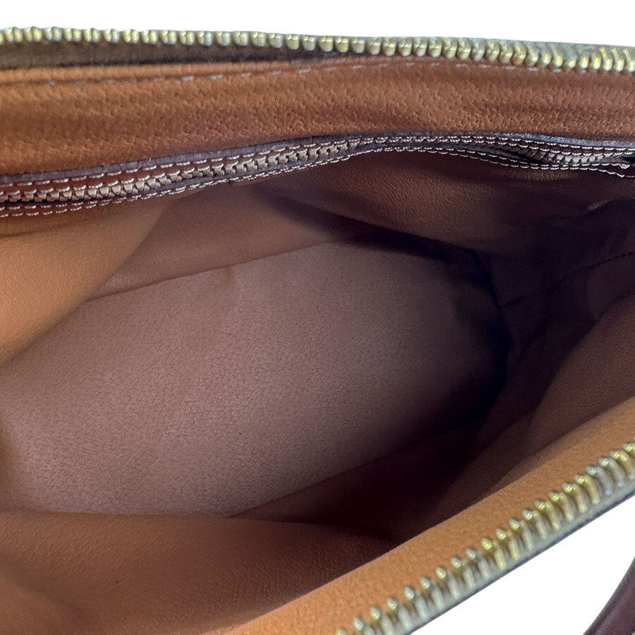 | ■商品状態 | ファスナー周りから表面一部にかけてボンド汚れがあります。 【外・角、フチ】スレ 【外・ハンドル-ストラップ】焼け、スレ、剥がれ 【金具部分】小キズ、退色 | ||