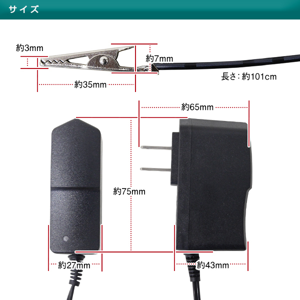 コンパクト バッテリー 充電器 AC DC コンバーター 100V から 12V 変換 車 バイク 検品 クリップ型 鉛蓄電池 バッテリーチャージャー