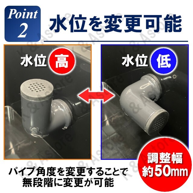 ■パイプの取付角度を変えて最大水位を変更可能