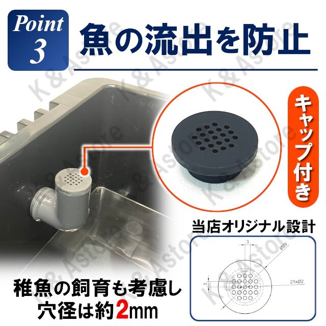 ■メダカの流出を防止する専用キャップ付属