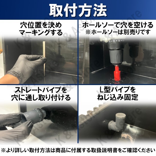 ※2:穴あけがまっすぐでなく楕円になっている場合やバリ等が残っている場合、水漏れが発生する可能があります。状況に応じてバリ取りを行ってください。