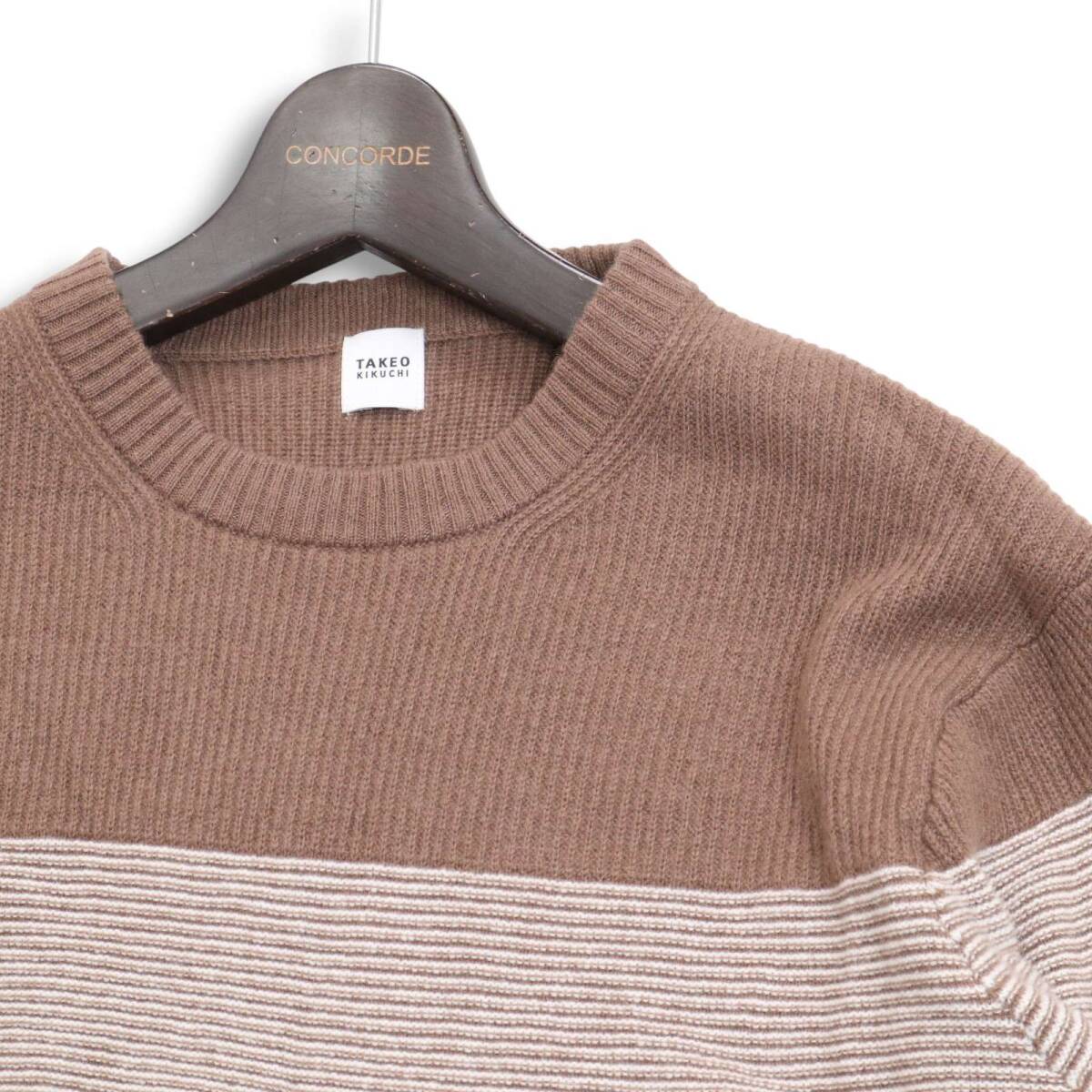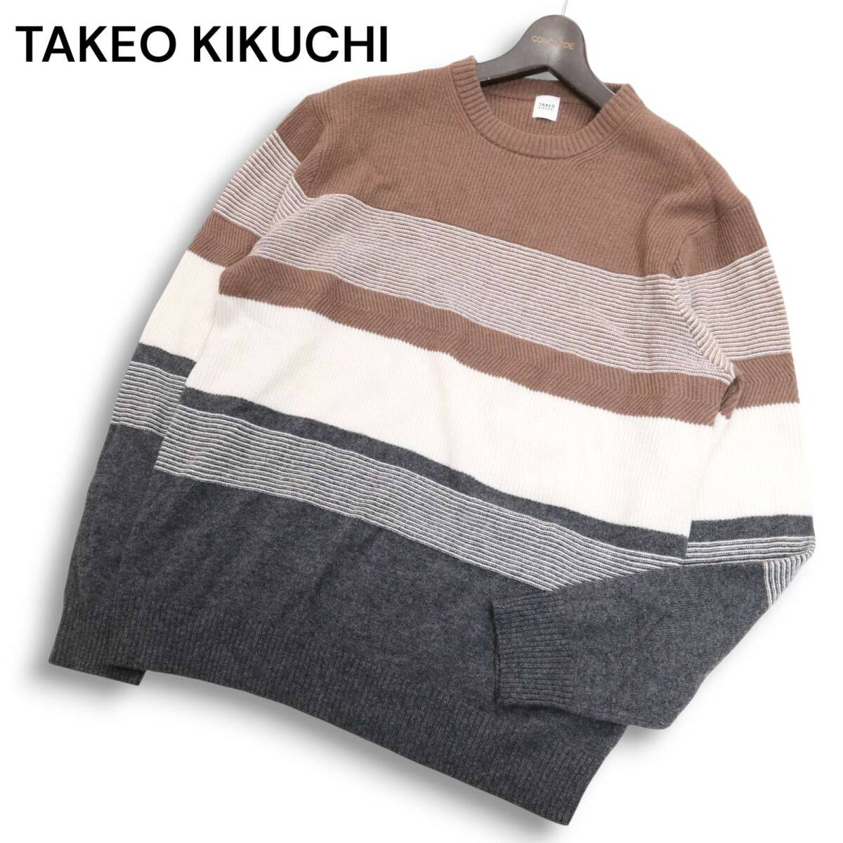 TAKEO KIKUCHI タケオキクチ 秋冬 カシミヤ100%★ マルチボーダー ニット セーター Sz.3 メンズ