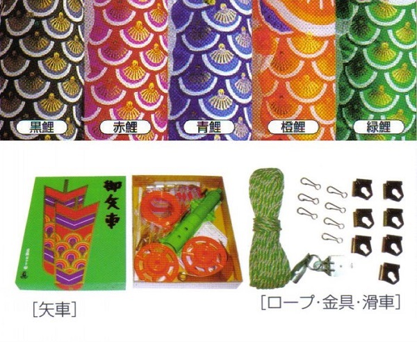 ○セットに含まれるもの:祥龍吹流し5m 金太郎黒鯉5m 赤鯉4m 青鯉3m オレンジ2m グリーン 1、5m(各ナイロン100%) 回転球 矢車 揚げ用ロープ25m(口金、滑車付)  取扱説明書等 (注!写真のポールは別売りとなります)