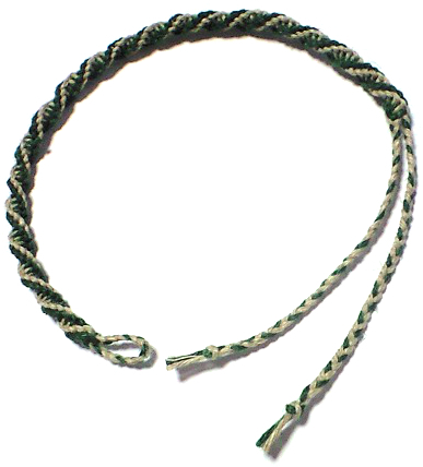 輪に分岐の1本を通し、もう一方と結んで留めるタイプです。
