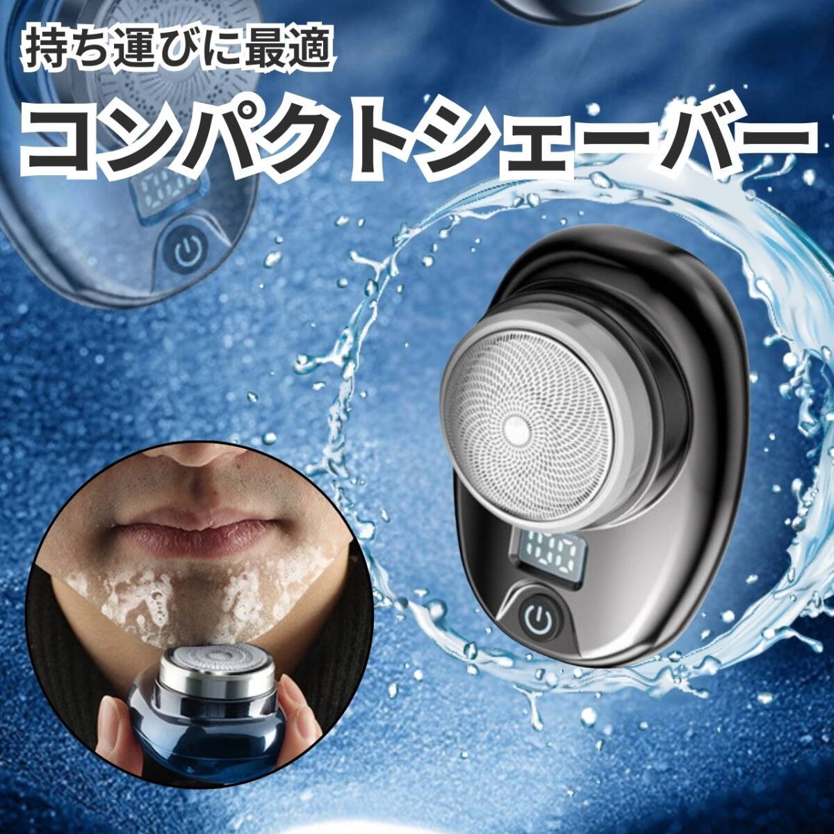 携帯用 メンズ シェーバー 小型 IPX7 USB充電式 ミニ回転式 水洗い防水 ブラック