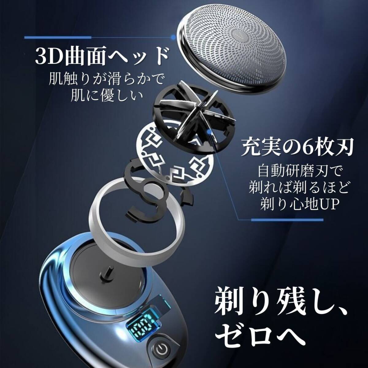 コンパクト&軽量デザイン手のひらサイズでわずか76gの超軽量シェーバー。片手で簡単に持ち運べるため、旅行や出張に最適です。どこでも手軽に使用できる設計です。充電式(Type-C)USB Type-C充電に対応し、充電器やパソコンからの充電がスムーズ。いつでもどこでも使える利便性を実現しました。回転式6枚刃スチール製メッシュカバーと回転式6枚刃が、しっかりとした深剃りを提供。快適な剃り心地で、肌に優しい使い心地です。水洗い可能IPX7防水仕様なので、水洗いが可能。清潔な状態を保ちながら、手軽にお手入れできます。ウェットシェービングにも対応しています。バッテリー残量表示機能LCD液晶画面でバッテリー残量を一目で確認できるため、使用前の不安を解消。便利さを追求した設計です。静音設計低音モーターを搭載しており、周囲を気にせずに使用できます。静かな環境でも快適に剃ることができるシェーバーです。【おすすめポイント】IPX7防水設計:水洗い可能で、掃除も簡単。衛生的に使えます。コンパクト&軽量:旅行や出張にぴったりなサイズ感で、持ち運びに便利です。優れた剃り心地:回転式6枚刃が、しっかりとした剃り心地を実現します。急速充電:USB Type-C充電で短時間で充電完了。安全性を考慮:カバーとブレードが一体で外れるため、安全にお掃除できます。【商品仕様】素材:ABS+アルミニウム合金充電時間:約90分使用可能時間:約30分バッテリー容量:リチウムポリマーバッテリー400mAhこの小型電気シェーバーは、切れ味抜群で水洗い可能。USB充電でバッテリー残量表示もついており、出張や旅行に最適なアイテムです。【基本仕様】本体サイズ:約74mm×51mm×22mm刃の枚数:6枚刃充電方式:USB Type-C付属品:ミニ電気シェーバー、充電ケーブル、掃除用ブラシこのシェーバーで、快適で清潔なひげ剃り体験をお楽しみください!