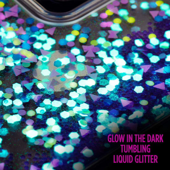 暗闇の中で、グリッターが光を放ち、美しく幻想的にGalaxy S10+を演出します。