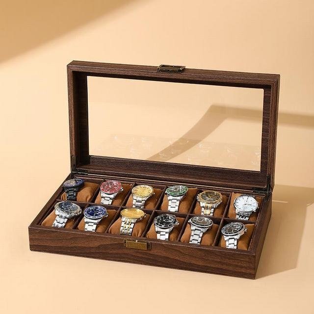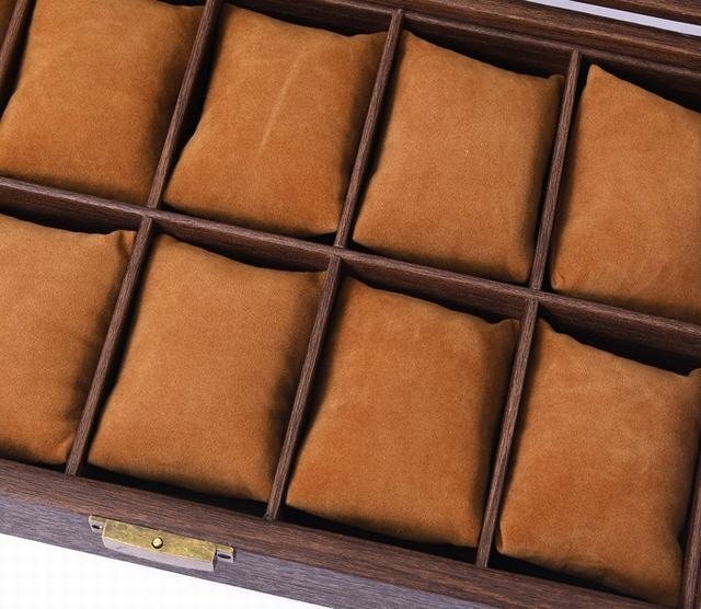 落ち着いた色味の木製収納ケースは大切な腕時計コレクションに相応しい安心感を与えます。シンプルですが、機能的なデザインは深さと直線にこだわり、上品と高級感を与えます。